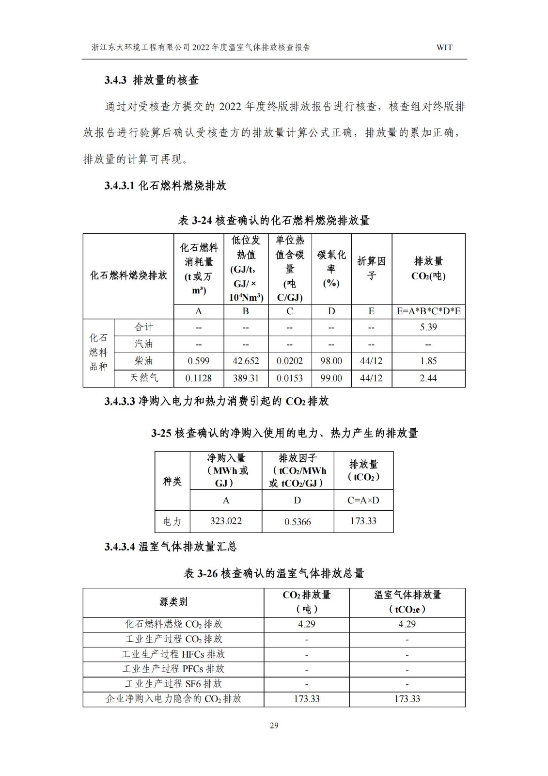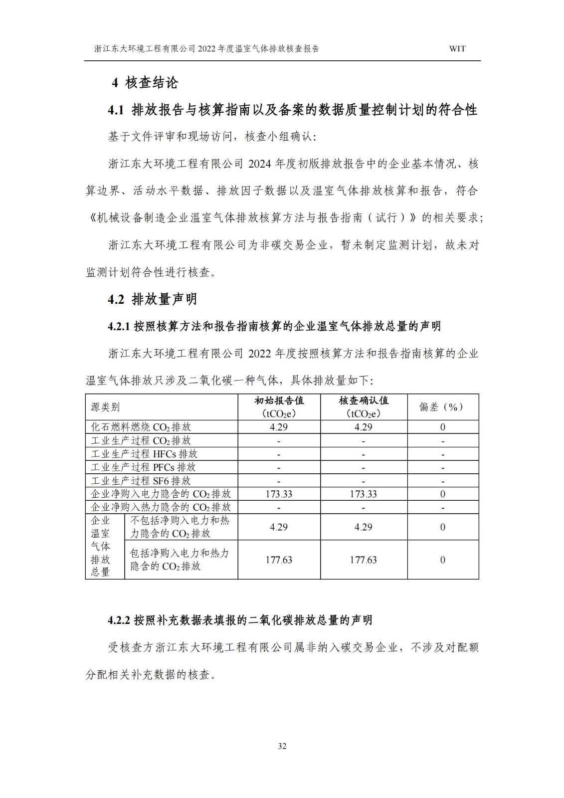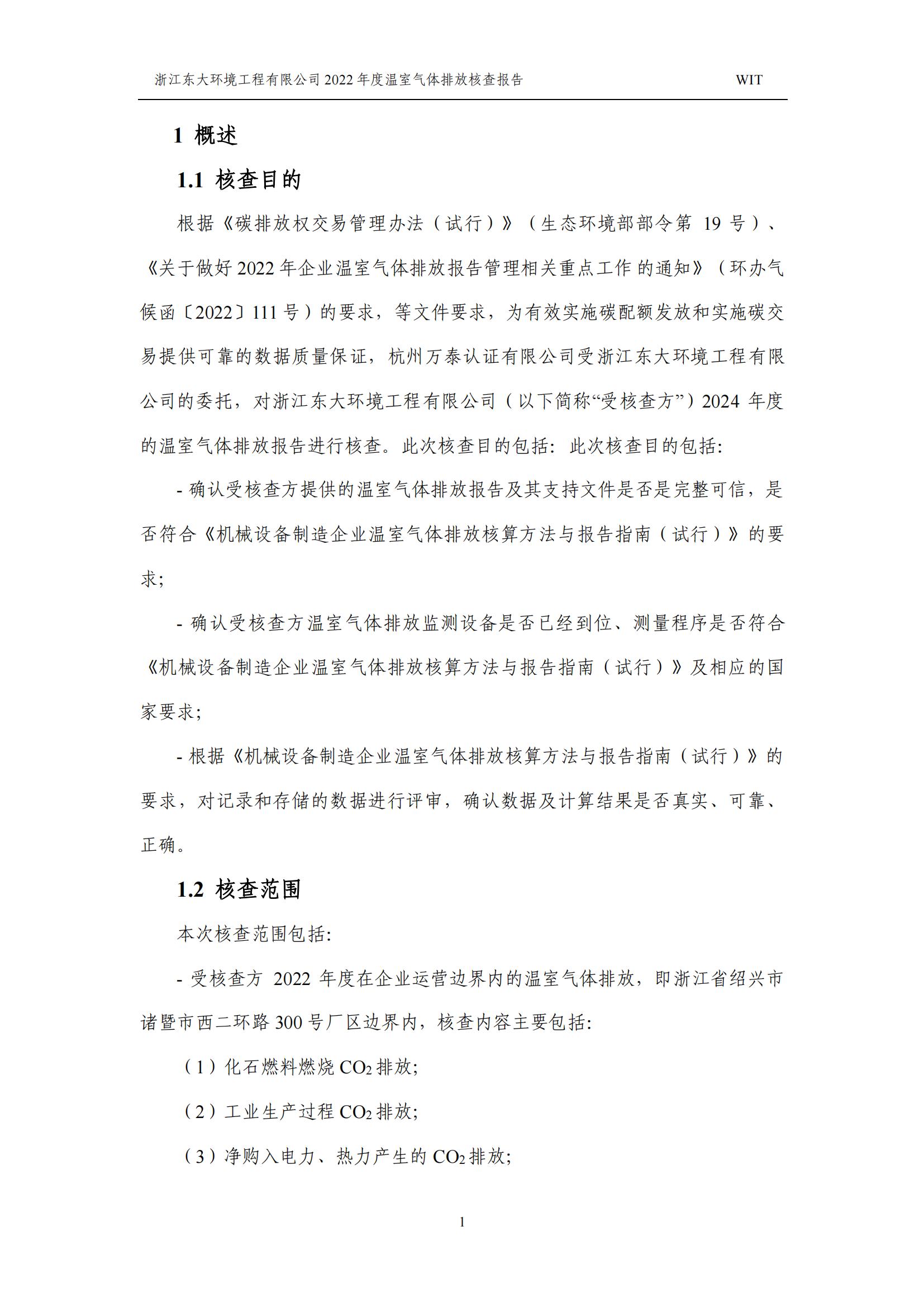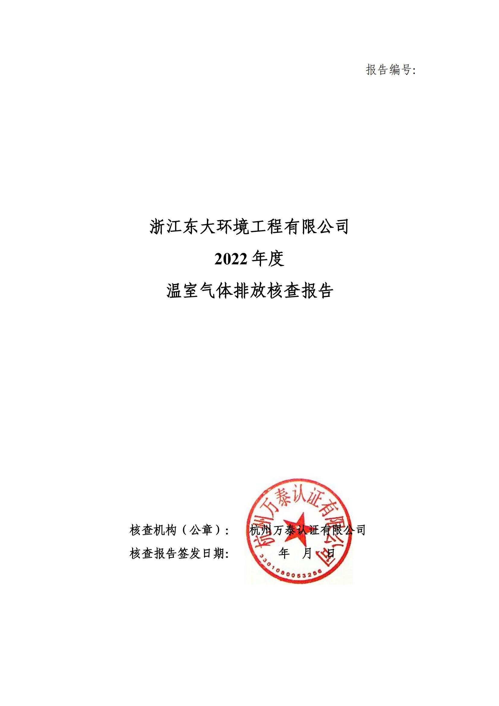 浙江東大環(huán)境工程有限公司2022年溫室氣體排放核查報告