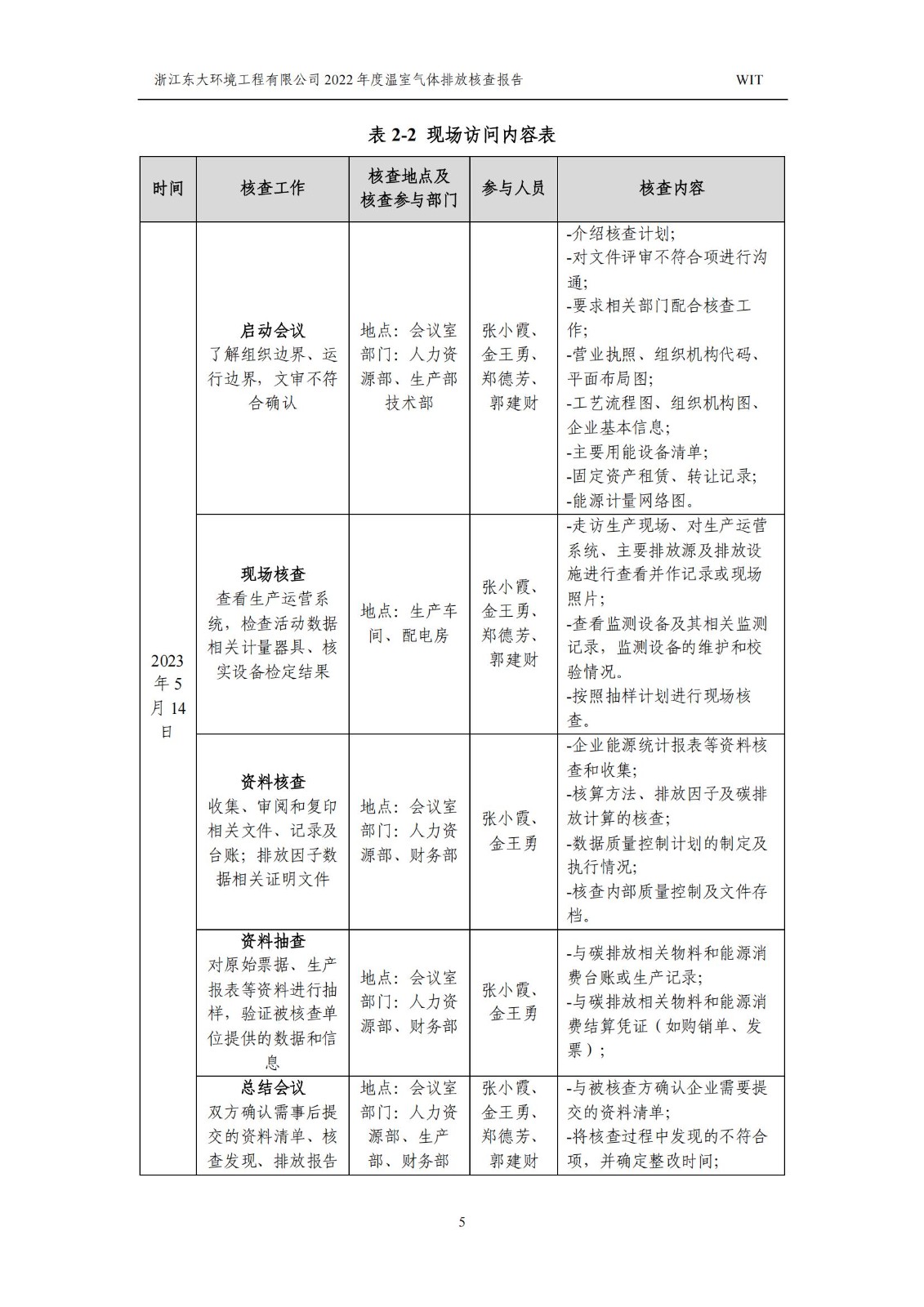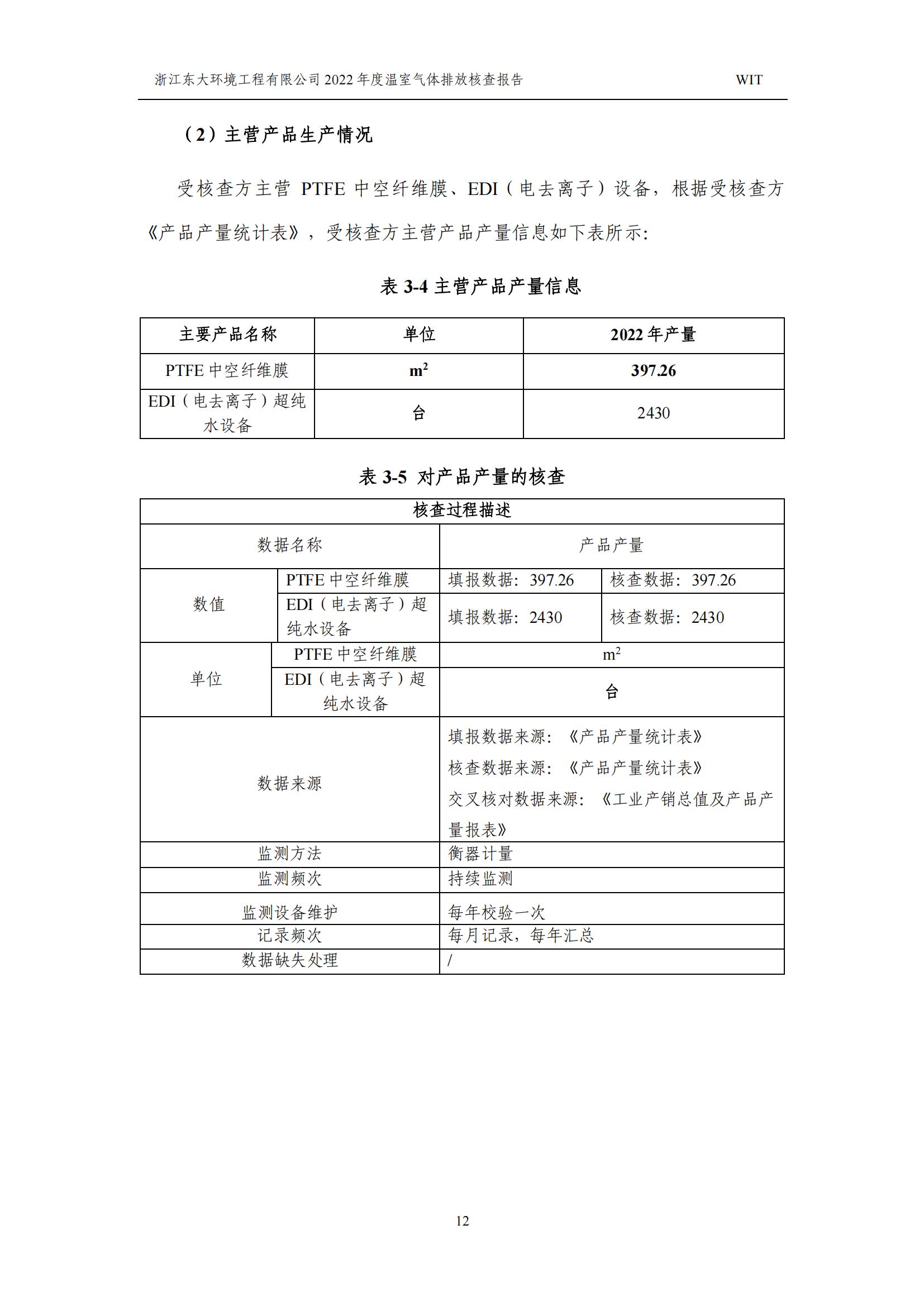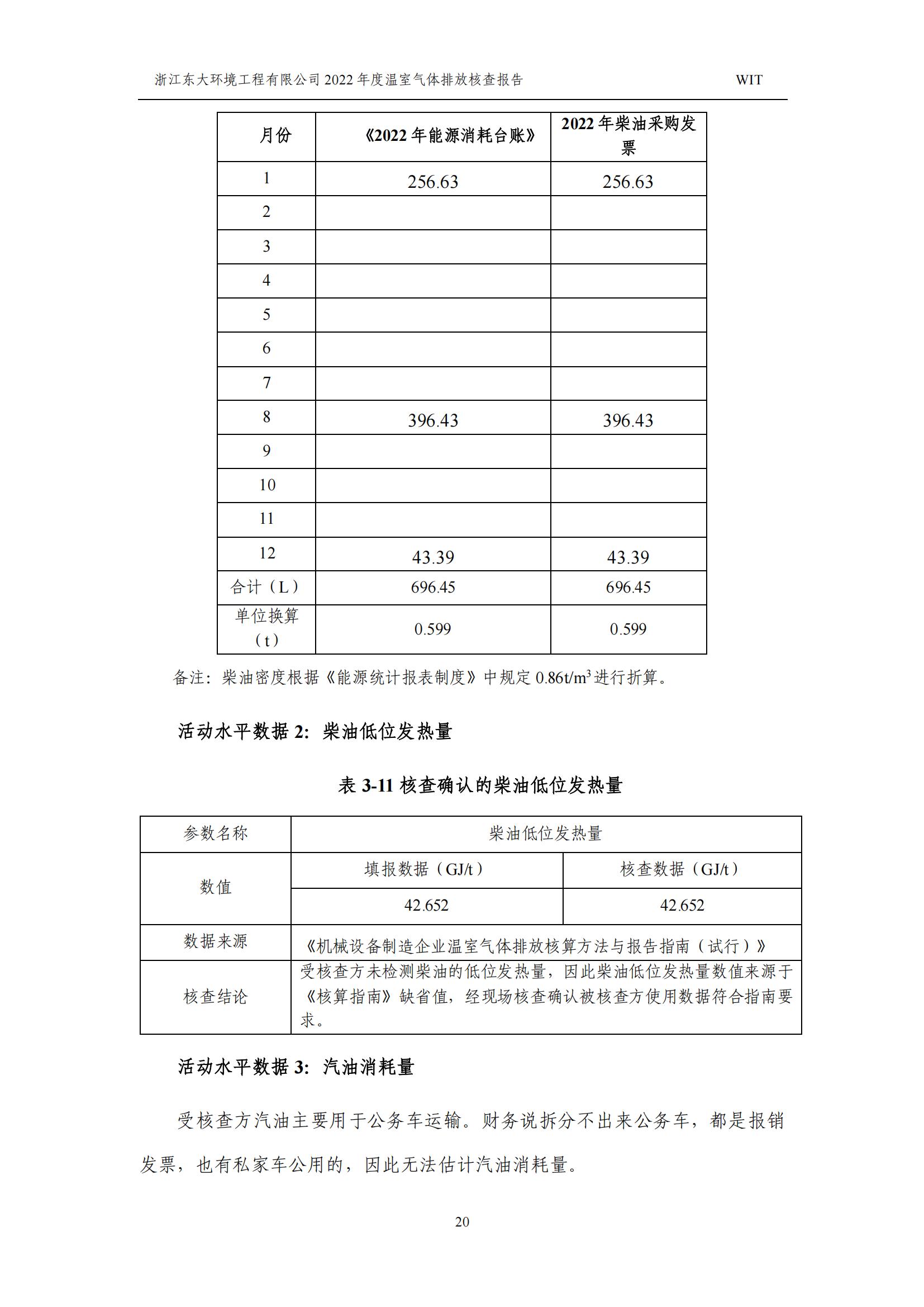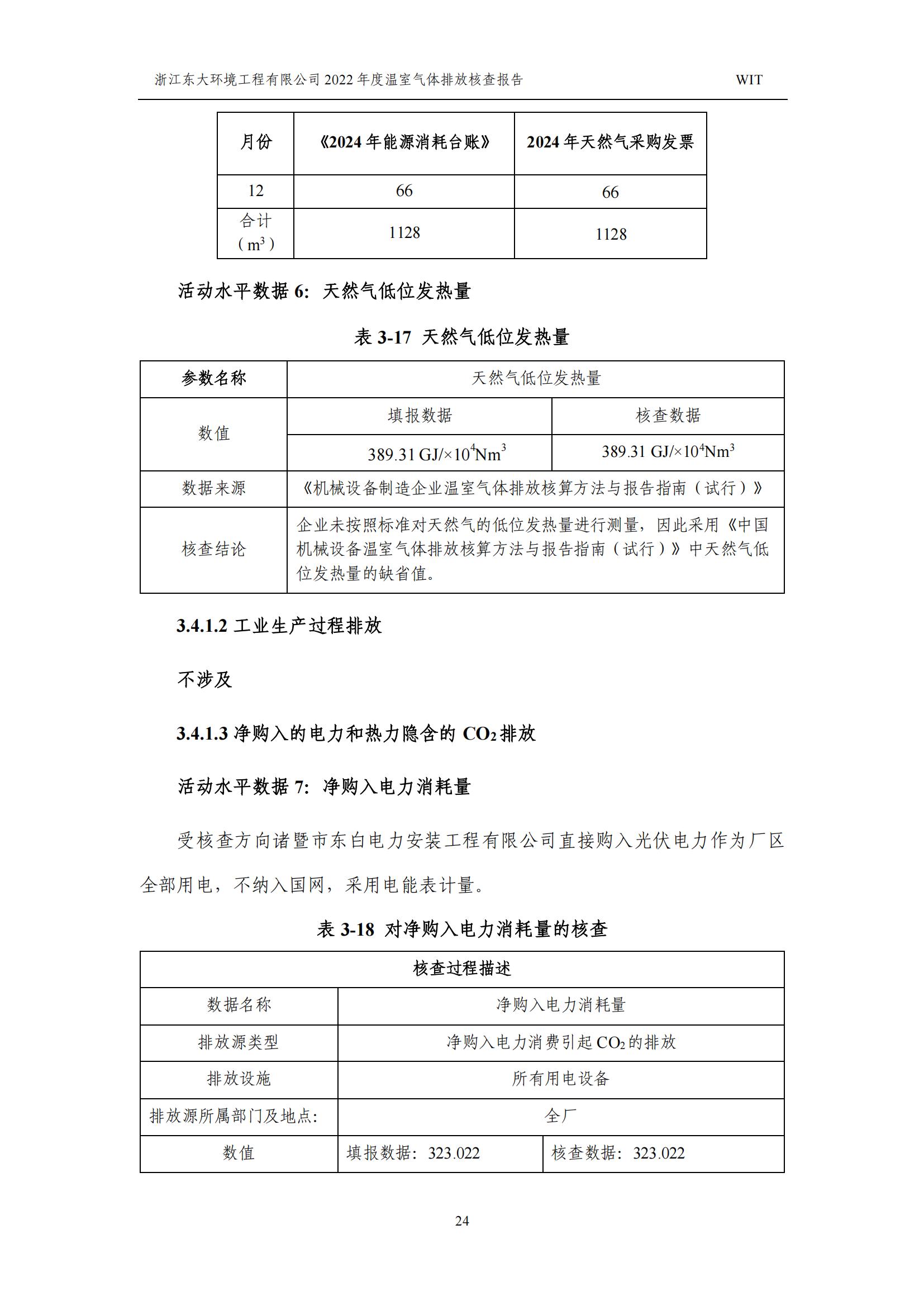 浙江東大環(huán)境工程有限公司2022年溫室氣體排放核查報告